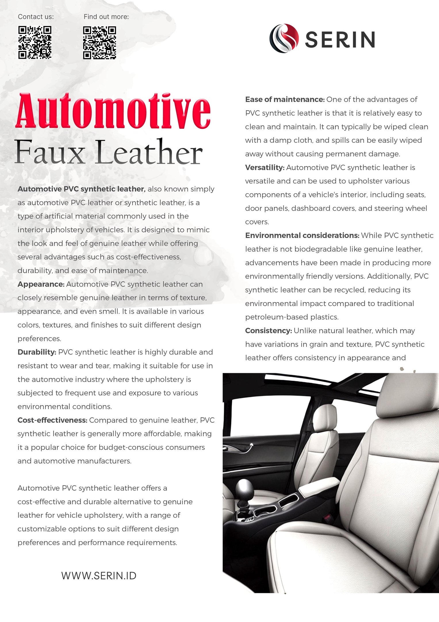 This type of leather is commonly used in the production of furniture, bags, shoes, and other accessories. Its popularity is mainly due to its affordability and ease of maintenance. PVC synthetic leather is resistant to water and stains, making it an ideal choice for applications that require high durability. Additionally, it can be easily cleaned with a damp cloth, making it suitable for both indoor and outdoor use. With its wide range of colors and patterns, PVC synthetic leather offers endless design possibilities, making it a popular choice among designers and manufacturers.